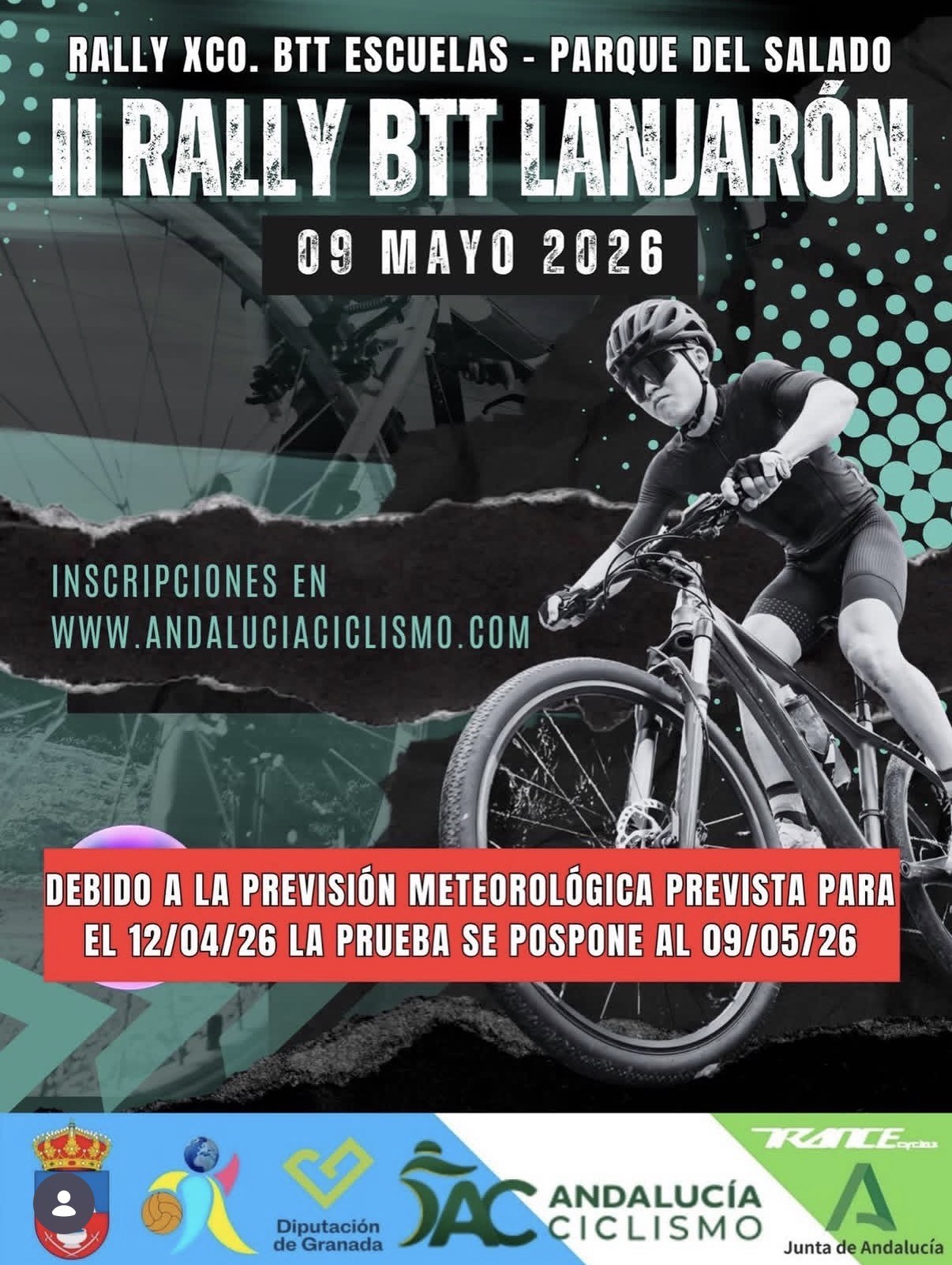 Se pospone por mal tiempo al segundo sábado de mayo el II Rally Escuelas BTT Lanjarón, quinta parada del Circuito Provincial BTT XCO Diputación de Granada 2026