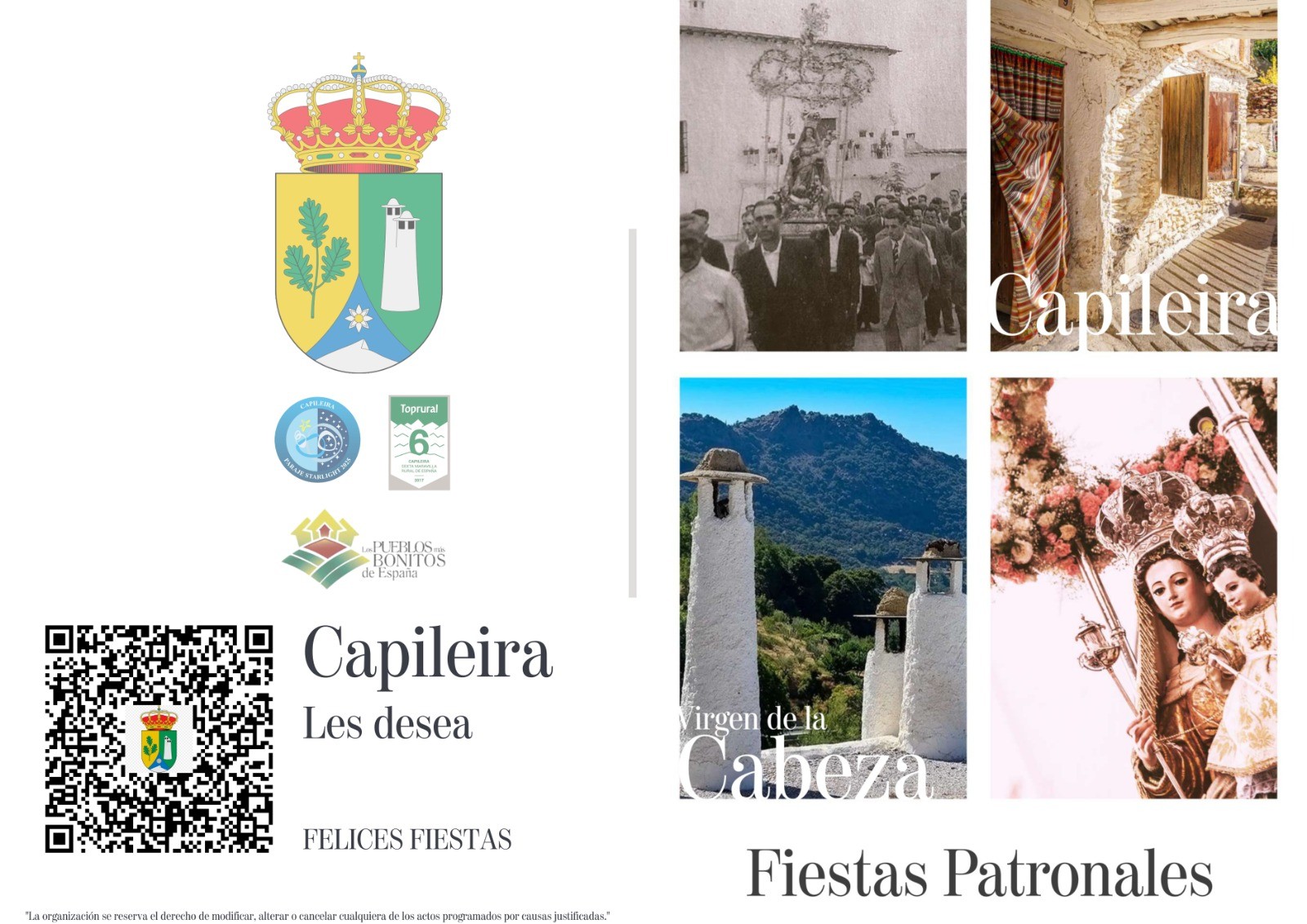 Desde el Ayuntamiento señalan que serán “cuatro días llenos de música, tradición, alegría y devoción en el corazón de la Alpujarra granadina. Disfrutaremos de la cultura, la gastronomía y el ambiente único de Capileira”.