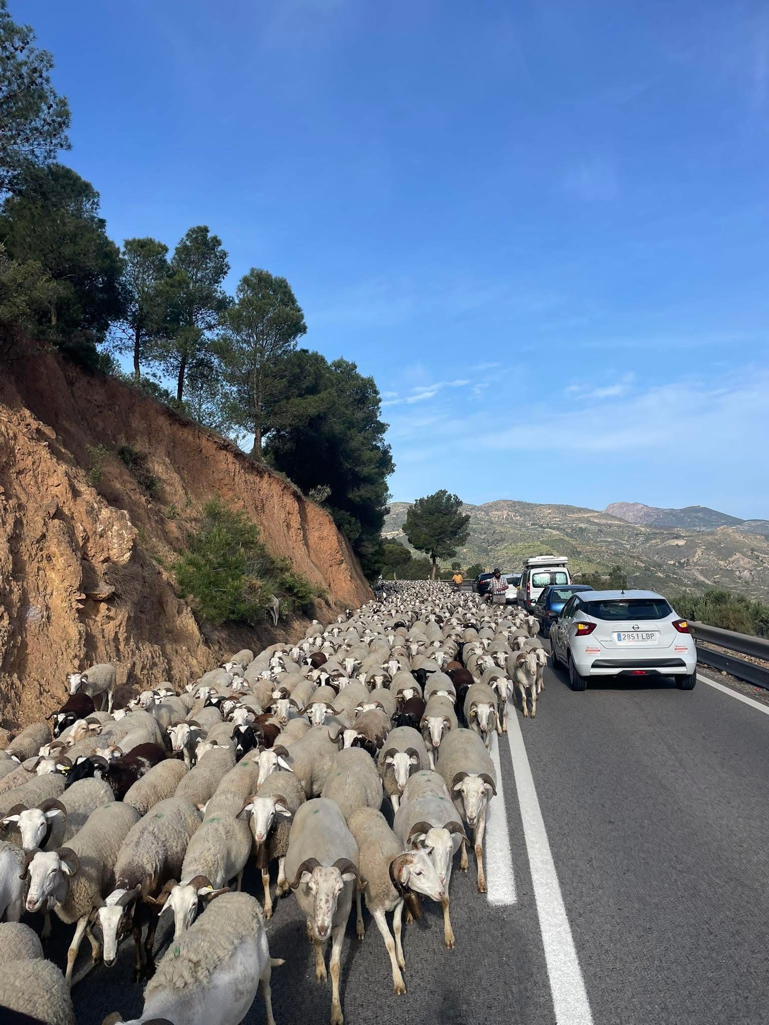 Cortes y tráfico lento en la A-346 este martes por el paso de la transhumancia en La Alpujarra