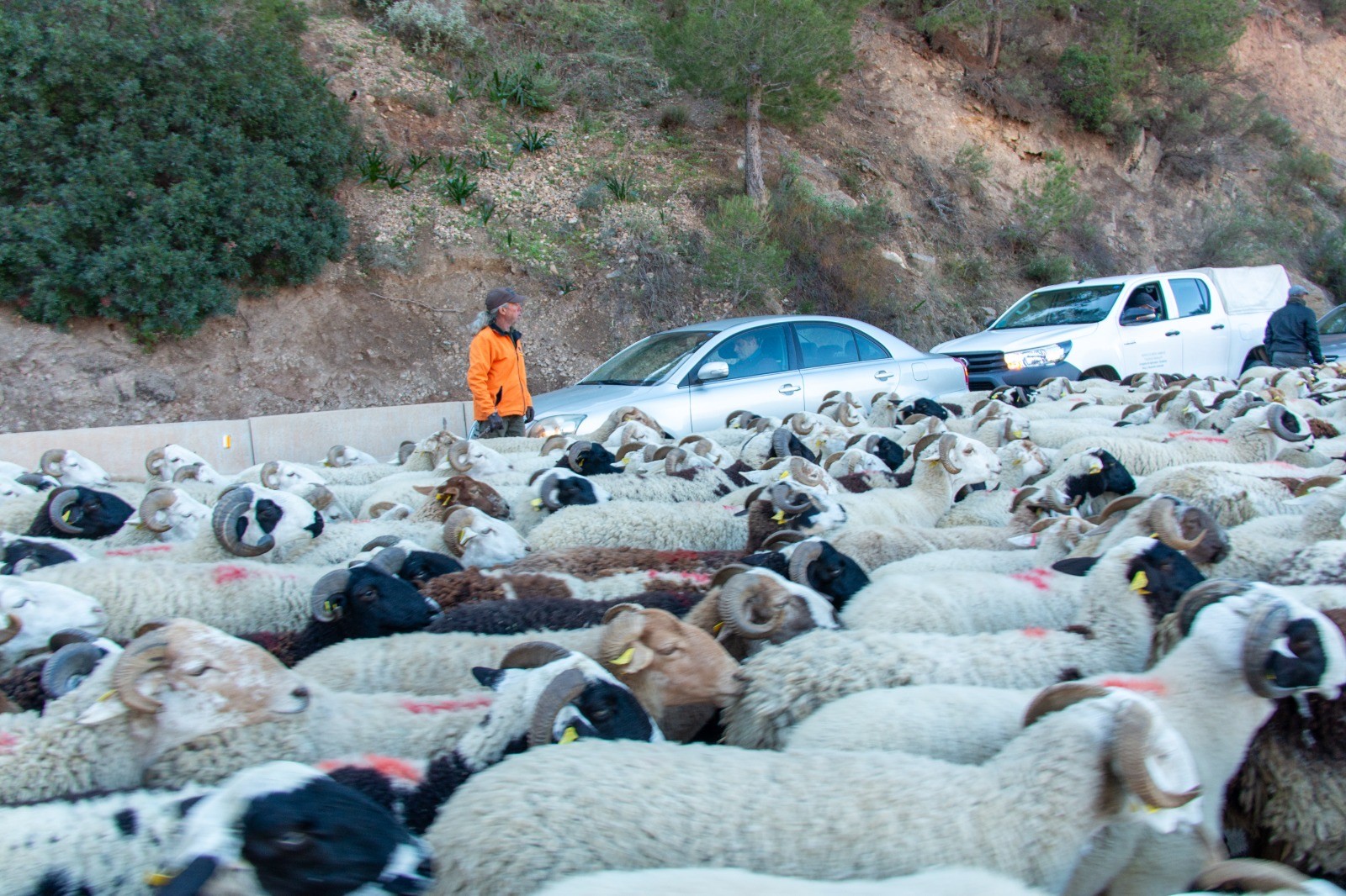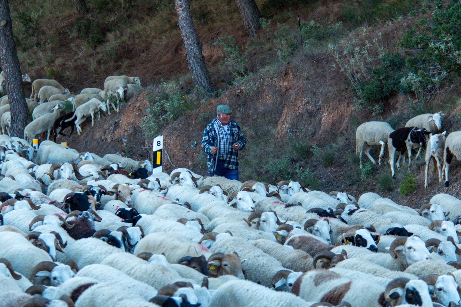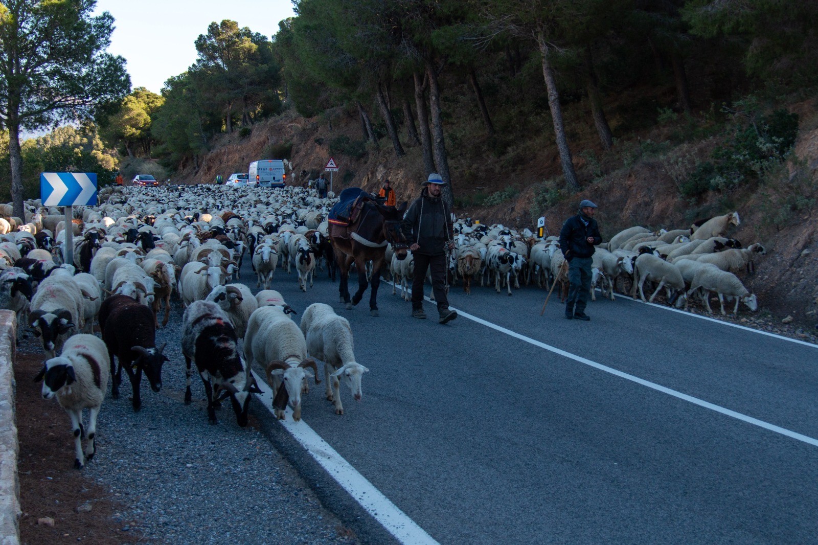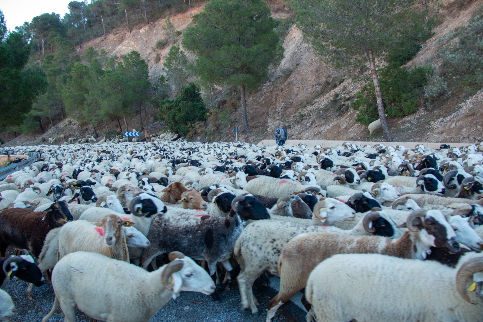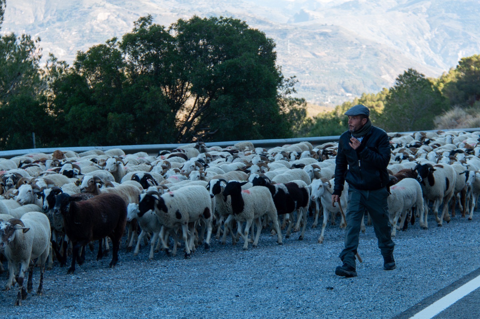 Gallego, posiblemente uno de los últimos pastores trashumantes de la provincia de Granada, destaca a EFE que durante estos seis días, siempre acompañado por la Guardia Civil de Tráfico a su paso por las carreteras nacionales o comarcales, se enfrenta a «numerosos desafíos ocasionados por la desaparición de muchas cañadas reales y veredas».