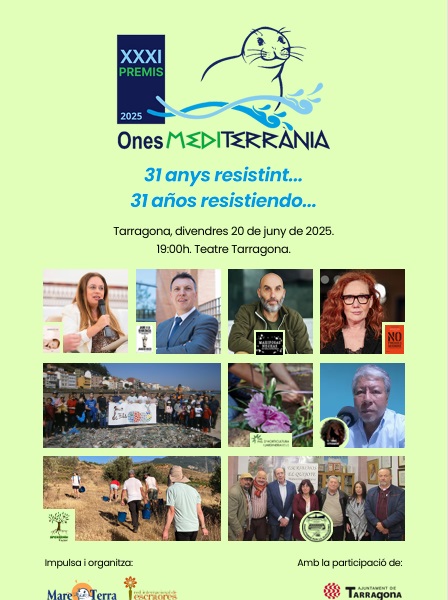 Los Premios Ones Mediterrània, organizados por la Fundación Mare Terra, llegan este año a su 31ª edición. La gala se celebrará el próximo 20 de junio en el Teatro Tarragona. En esta edición, los premiados son diversos y destacan la Asociación de Escritores por La Alpujarra, además de la periodista Cristina Fallaràs o el abogado Joaquim Bosch. De igual forma, se premiará la película Mariposas Negras de David Baute y la asociación ecologista Mar de Fábula, de Camariñas, entre otros