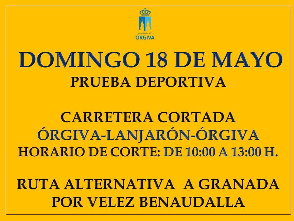 Durante el transcurso de la carrera, teniendo en cuenta que los atletas ocuparán la carretera que discurre entre Órgiva y Lanjarón, se procederá al corte de la vía (la A-348) desde las 10.00 hasta las 13.00 horas. Se creará un carril de paso alternativo para la carretera A-4132 dirección A-346 (Trevélez – Vélez Benaudalla) que será también la ruta alternativa a Granada.