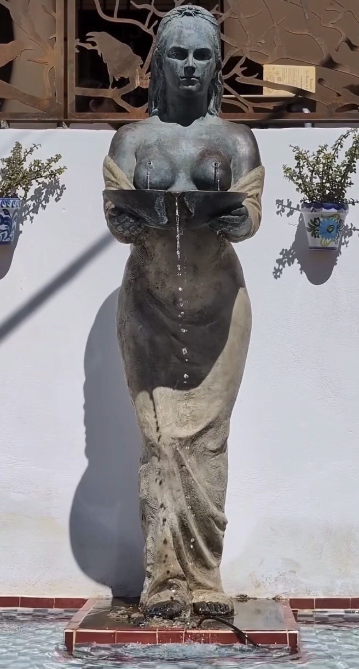 Rodeada de símbolos y con una presencia hipnótica, la figura parece vigilar en silencio, esperando a quienes se atrevan a beber de su agua. Aquellos que se acerquen podrán leer: «De los pechos de Circe brota el placer, pero si eres ruin, te hará enloquecer; su agua seduce, su magia es mortal, y al hombre malvado lo vuelve animal.»