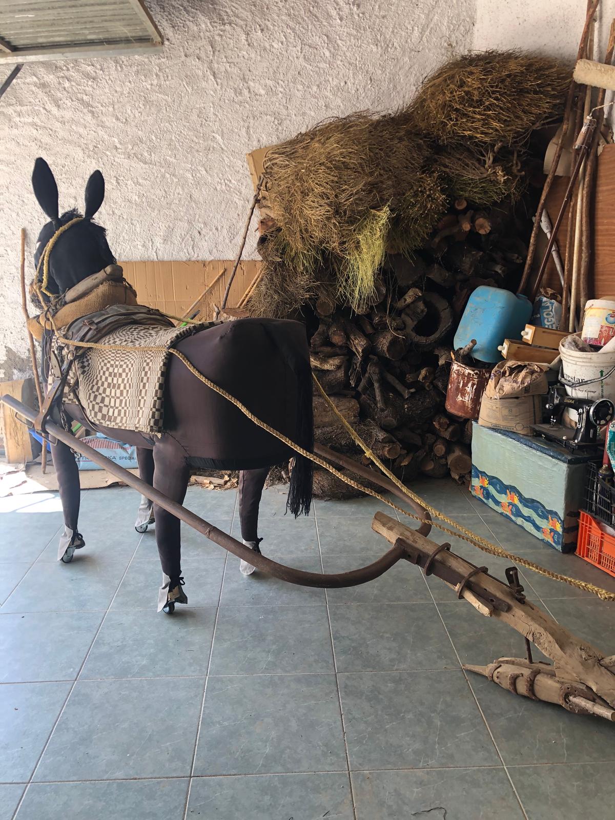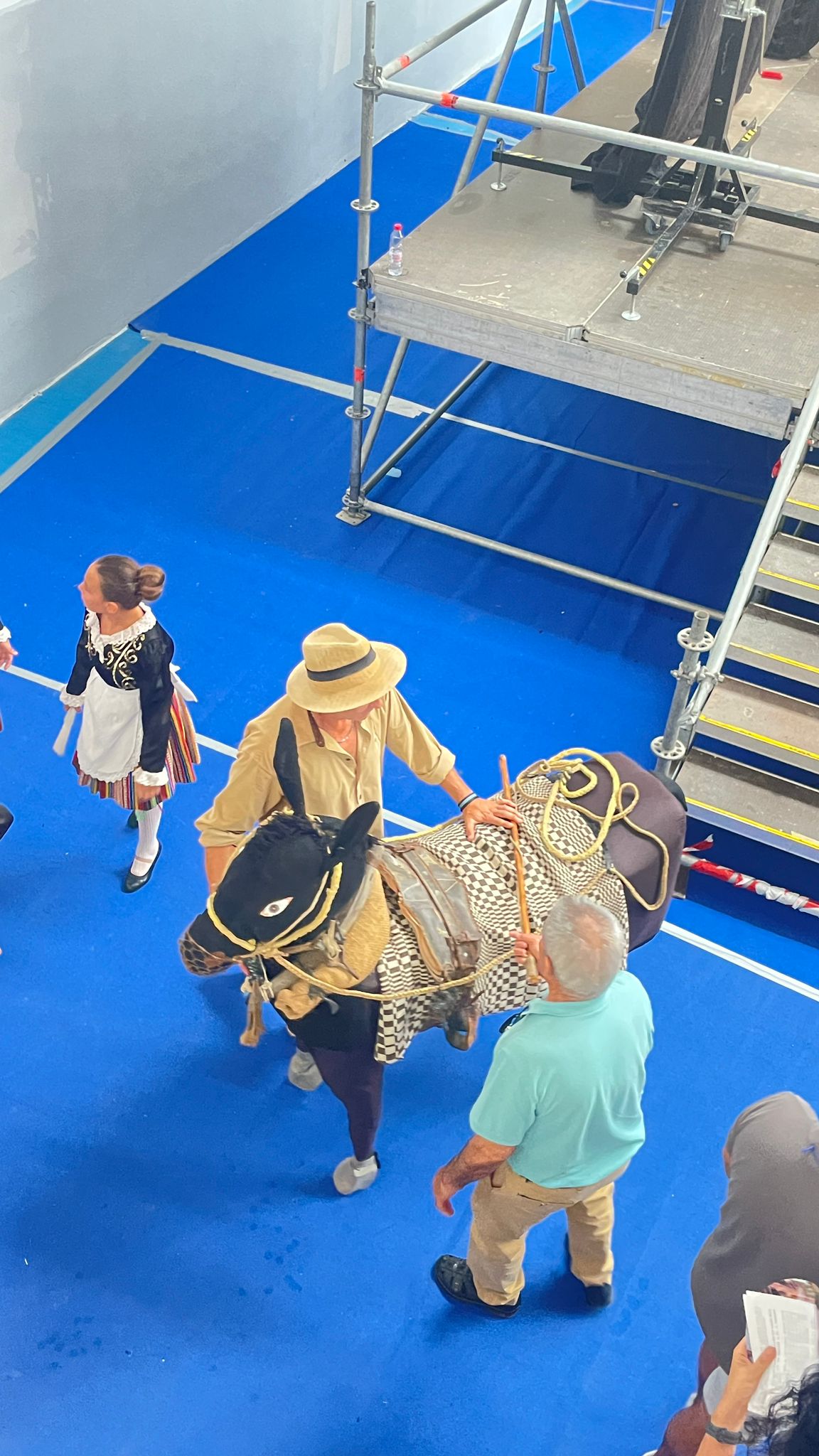 La presentación incluyó un mulo y vestimenta de labranza, meticulosamente preparados por Isabel Linares y varios colaboradores. Sin embargo, sorprendió la falta de reconocimiento hacia el vestuario y la escenografía que acompañaban el cante, así como los utensilios de labranza como el arado, la ganga, la camella, el entrerrollo, la martaguilla y el bozal, todos dispuestos en el mulo bajo la guía de los labriegos, que lucían pantalones y chaquetillas de pana, camisas caqui y albarcas.