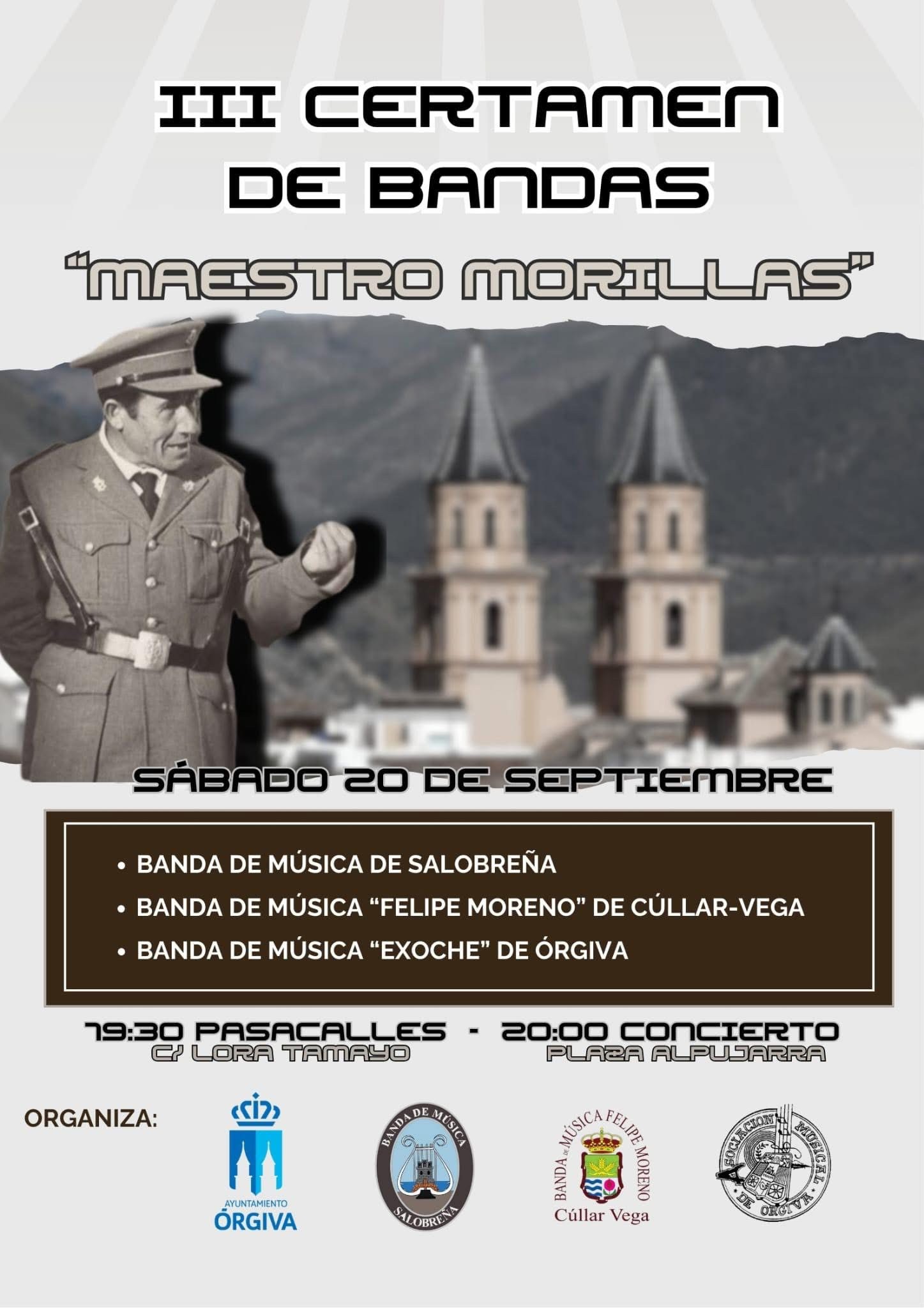 Órgiva será escenario este sábado 20 de septiembre del III Certamen de Bandas de Música ‘Maestro Morillas’, un evento organizado por la Asociación Musical Exoche con la colaboración del Ayuntamiento de la localidad.