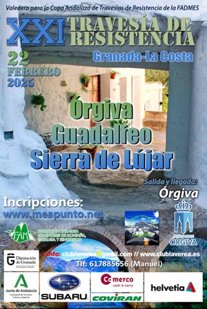 Cuenta atrás para la celebración de la XXI Travesía de Resistencia Granada a la Costa, prueba que se realiza por el término municipal de Órgiva, Valle del Guadalfeo, Sierra de Lújar, Tablones, Junta de los Ríos y final de nuevo en Órgiva con un recorrido aproximado de 51 kilómetros y que tendrá lugar este sábado 22 de febrero.