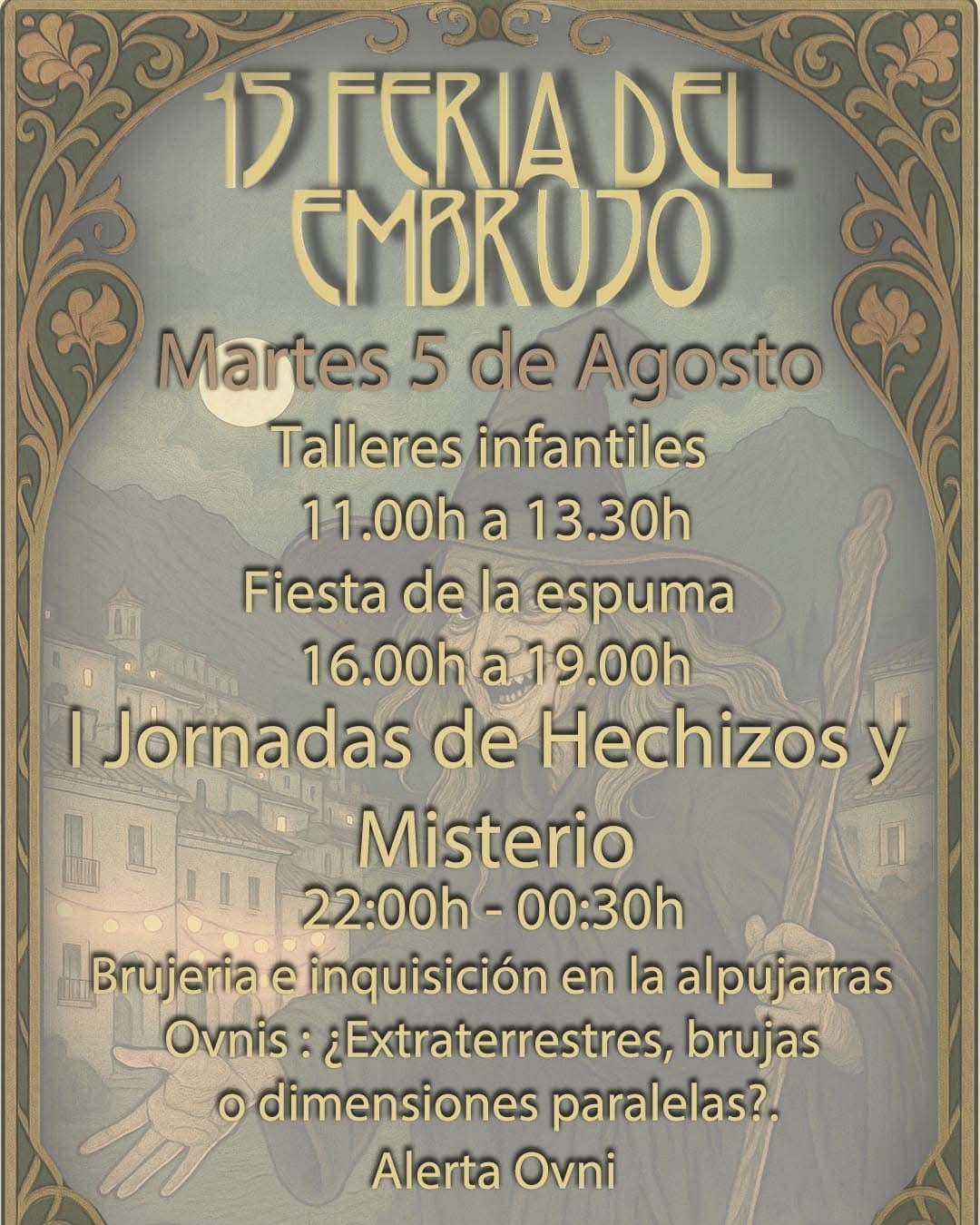 El programa de esta edición incluye pasacalles de brujas y criaturas fantásticas; las I Jornadas de Hechizos y Misterios de La Alpujarra; mercado medieval con artesanía, gastronomía y productos esotéricos; aquelarres y rituales nocturnos; espectáculos teatrales y conciertos en vivo; verbena popular y actividades familiares… Además de la oferta lúdica, el evento busca reivindicar la identidad cultural del pueblo y potenciar el turismo rural, en un entorno natural privilegiado como es La Alpujarra granadina.