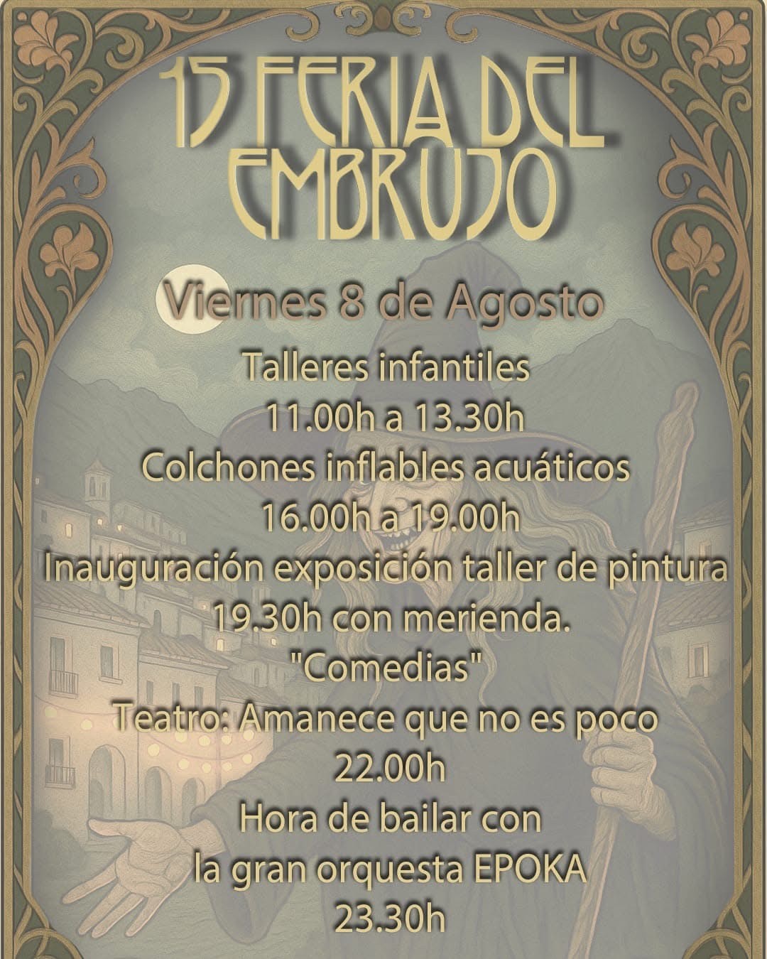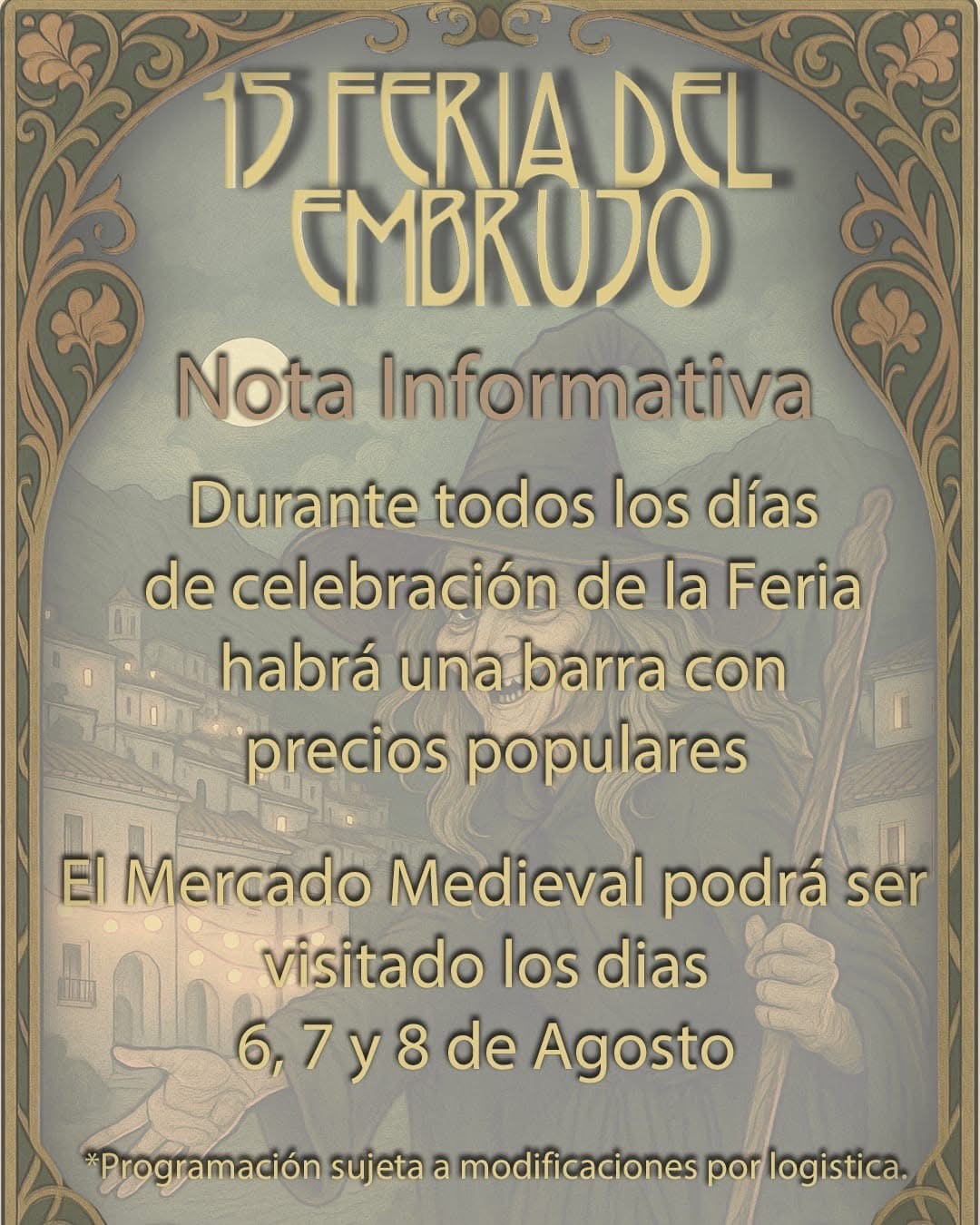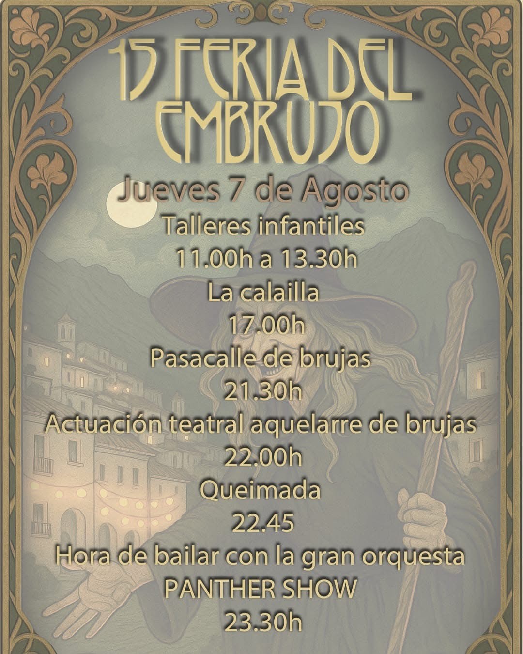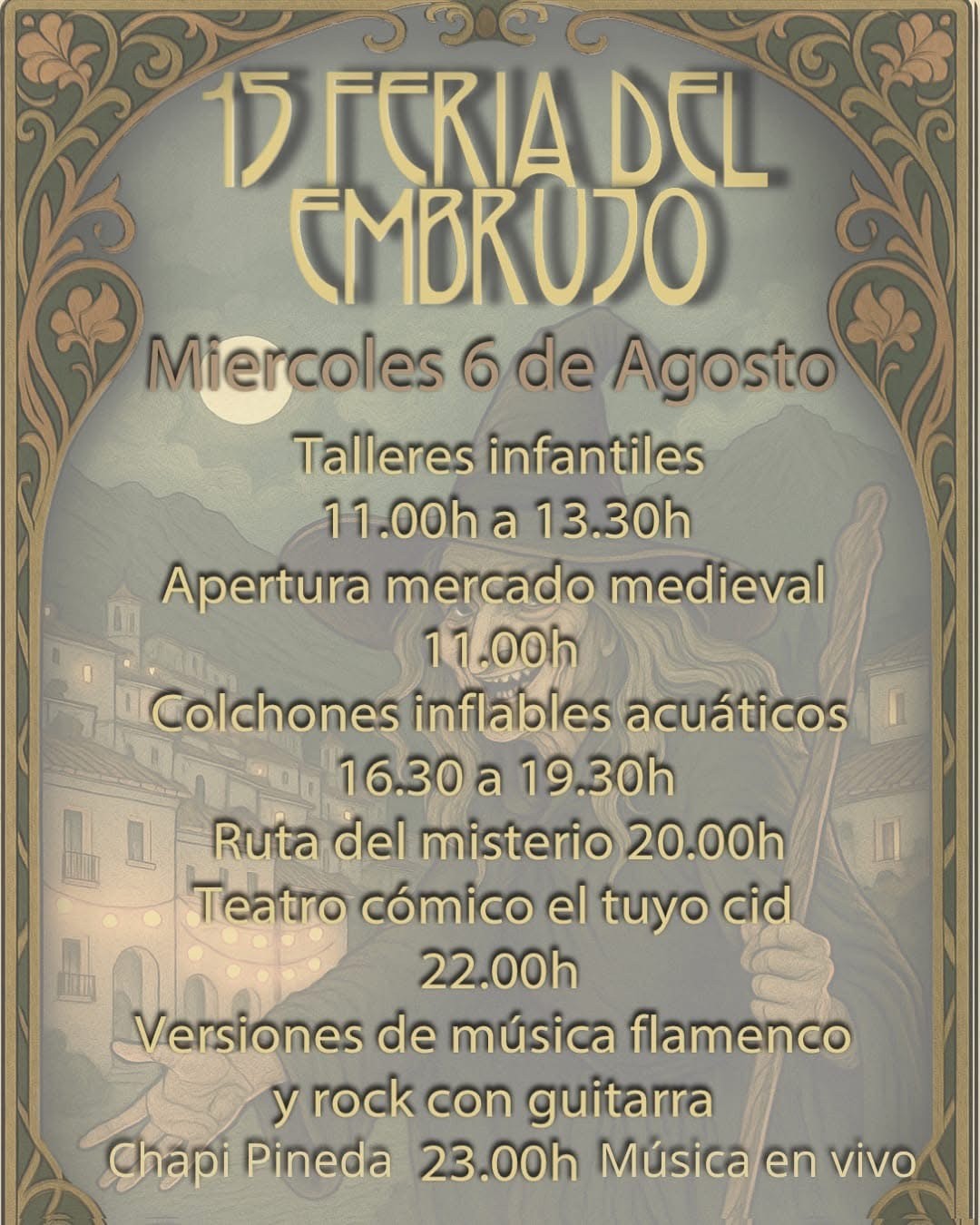 Durante seis días, el municipio se sumergirá en una ambientación mágica y festiva que combina leyenda, tradición, teatro, música y esoterismo. La feria cuenta con un completo programa de actividades pensadas para todas las edades, con especial protagonismo del mercado medieval, los pasacalles temáticos, los rituales simbólicos, el teatro al aire libre, y la emblemática Noche de las Brujas, que se celebrará el 7 de agosto.