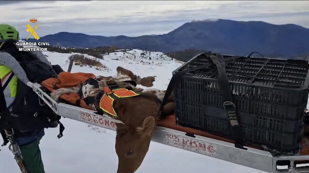 La Guardia Civil rescata a varios animales de granja atrapados por la nieve en Capileira