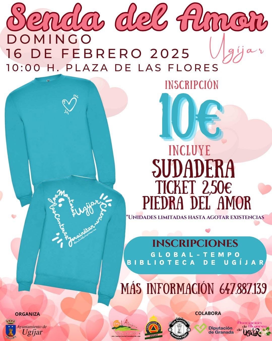 Los participantes deberán inscribirse, aportando 10 euros, en https://www.global-tempo.com/carreras.php?id=2649 o en la Biblioteca de Ugíjar. La participación incluye una sudadera exclusiva junto a ‘la piedra del amor’ y un vale canjeable en los bares participantes en ‘la Ruta de La Tapa del Amor’. Además, quienes vengan con mascota, también habrá detalles para ellas.